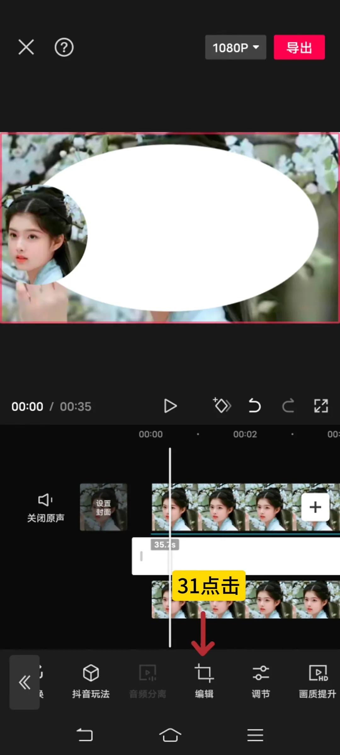 拖拽时间轴至画中画轨道素材末尾位置,工具栏点击“编辑”按钮,如图26-46所示。