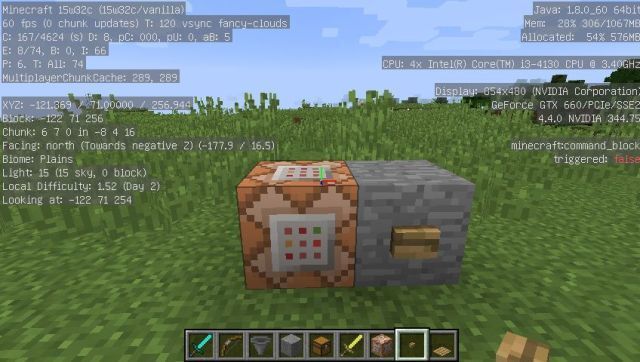接下来是命令方块的摆放方法,其实很简单,摆在地上就可以了,只是按钮的放置有一些不同首先是最为常见的。隔壁摆一个石头,然后在石头上放一个按钮: