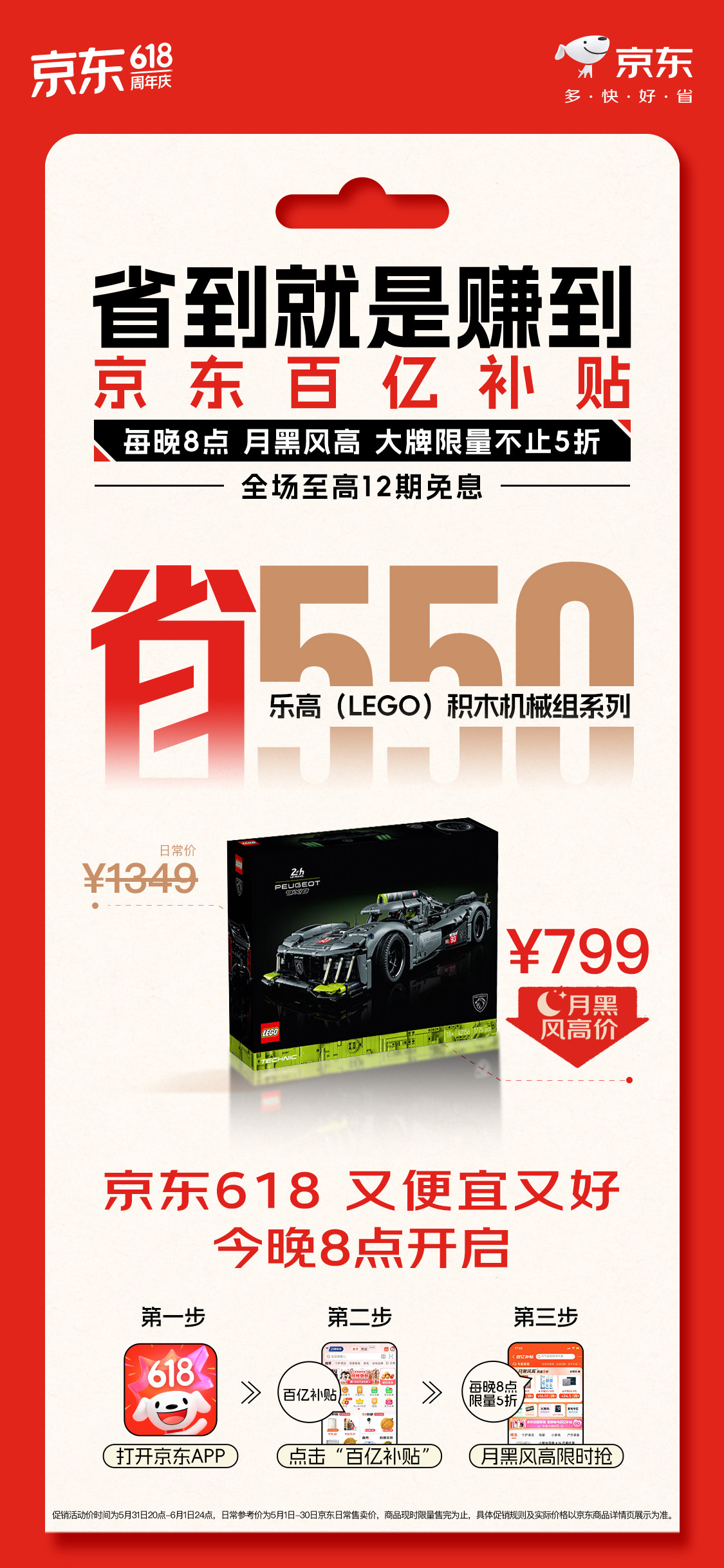 “百亿补贴日”活动期间,正是六一儿童节,如果还没有选好送给家中小朋友或者童心未泯的自己的节日礼物,不妨看看这两款,乐高(LEGO)积木机械组系列标致9x8超跑,1:10比例呈现理想车模尺寸,收藏版经典标致9x8无尾翼混动跑车更具有纪念意义,京东日常价1349元,月黑价低至799元;送给女孩的话,这款迪士尼(Disney)春日复活节限定玲娜贝儿站姿毛绒挂件定能俘获她的心,奶呼呼的小狐狸可爱十足,京东日常价299元,月黑价只需149.5元。