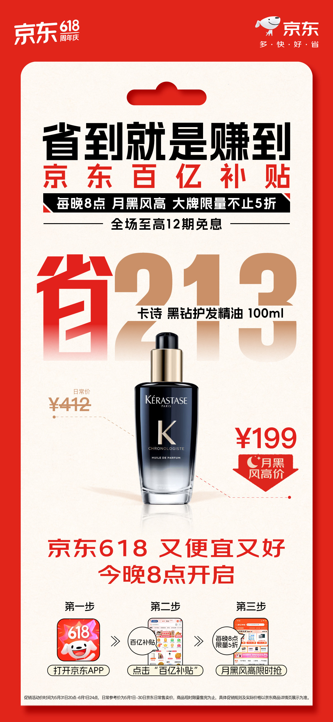 京东618“百亿补贴日”还将在晚上8点加磅“月黑风高”活动,带来海量大牌5折限时限量抢购,覆盖美妆护肤、3C数码、个护、玩具、宠物等多个品类,让消费者省上加省。