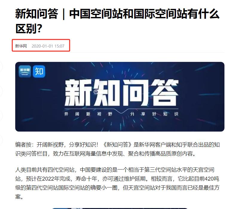 信息来源:新华网2020年1月1日关于“新知问答|中国空间站和国际空间站有什么区别?”的报道