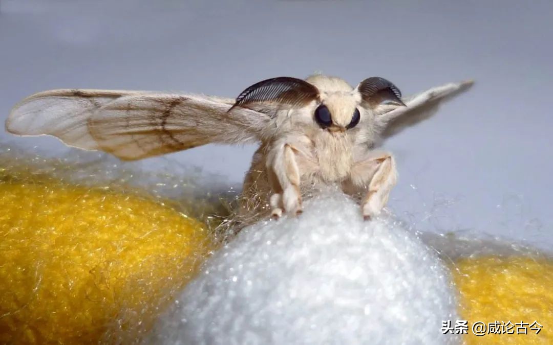 约十天后,蚕蛹羽化成蚕蛾,破茧而出。