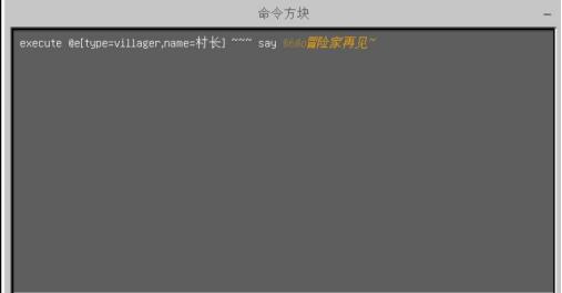 然后在命令方块的任意一侧放一个红石比较器和红石粉,再连接一个命令方块,打开命令方块并输入“execute @e[type=villager,name=村长] ~~~ say 你好呀冒险家”其他设置保持默认即可。