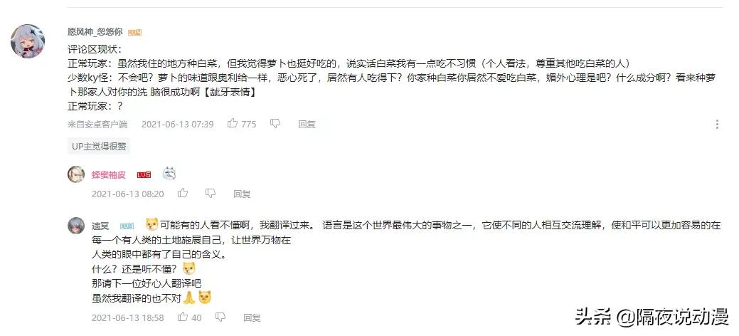 嘛,表达自己的想法是没什么问题的,但总会有部分人持不同意见,于是他们也在评论区里留言表达自己的看法,当双方意见不合的时候就容易引发争论。