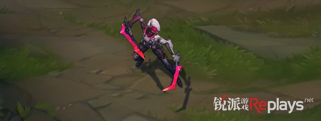 飘逸的白色长发,殷红的剑刃,技能也是全新粒子,包括非常显眼的buff效果和出招动画: