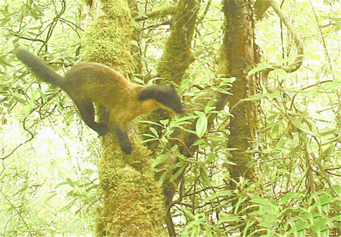 蜀山之王贡嘎雪山, 山顶常年白雪皑皑,山脚下却郁郁葱葱,一片生机勃勃的景象。就在这些树丛中,生活着一种像黄鼠狼一样的动物——黄喉貂,但这家伙可比黄鼠狼要凶狠得多。