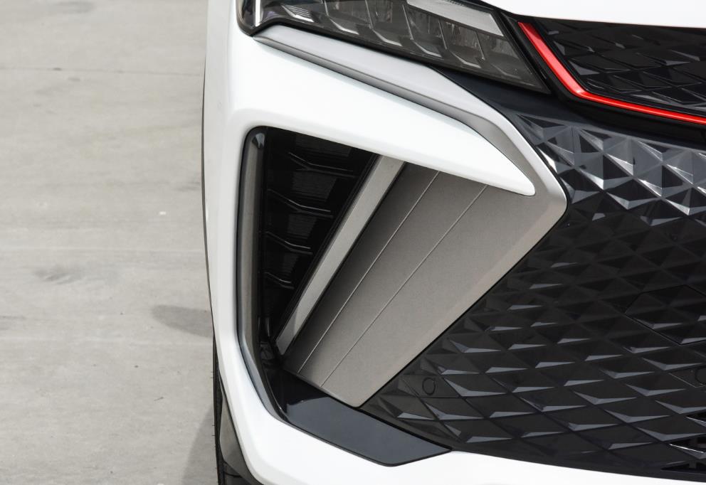 应该说,缤越COOL的外观高度还原了设计草图的神韵,直接把概念车变成了量产车,前脸采用X型轮廓进行勾勒,融入上下两条橙色线条,全系配备矩阵式LED大灯,这一点挺厚道,在同级车型里颇具优势,下方雾灯区采用巨大三角轮廓进行修饰,凸显极强的运动气息。