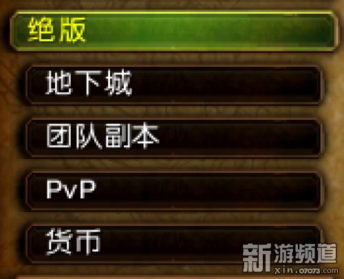 成就系统的“绝版”一栏中,新增了四个子栏目,分别为地下城、团队副本、PvP、货币。目的是将以往的绝版的成就进行细分,免得绝版成就造成“绝版”一栏庞杂。