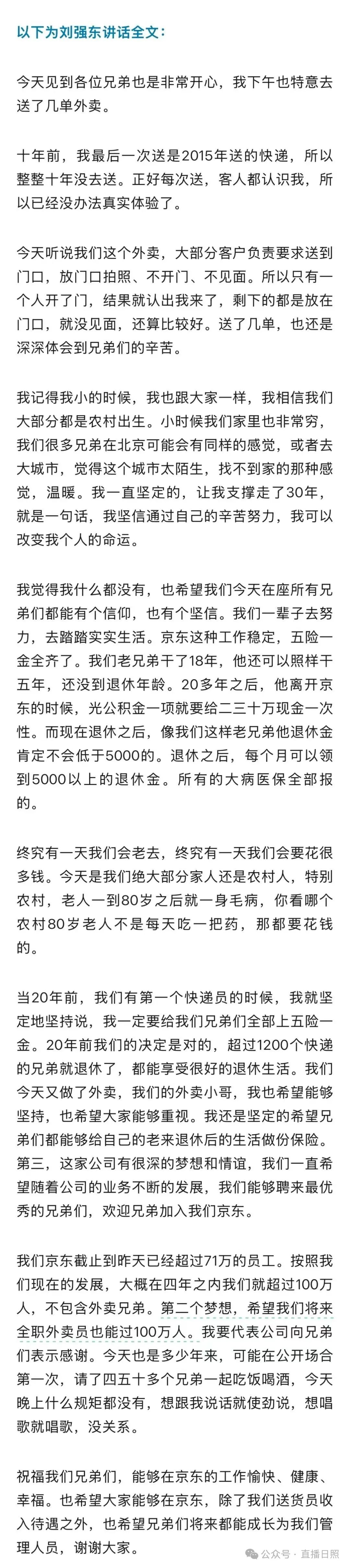 “京东外卖崩了”冲上热搜!刘强东送外卖后请骑手吃火锅,讲话全文公布
