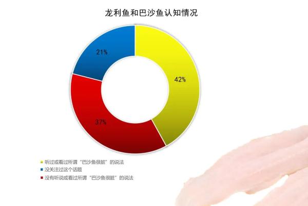 调查数据显示,在知晓龙利鱼和巴沙鱼区别的受访者中,有42%的受访者表示听过或看过“巴沙鱼很脏”的说法。