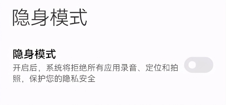 隐身模式的功能如其名,当我们开启模式后,MIUI将会拒绝所有应用录音、定位和拍照。