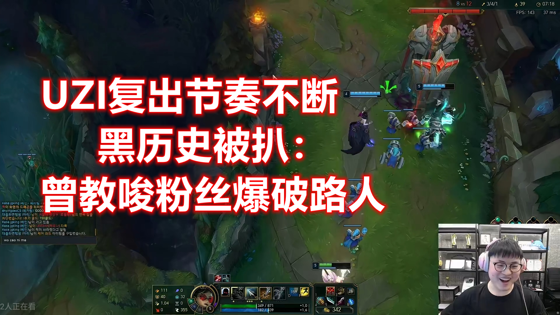 因为这一波节奏,乌兹在21年7月份教唆粉丝爆破路人的一则视频,又被扒了出来,那时候的乌兹还是全职直播,在韩服Rank的时候,下路1级对线打出双杀,对面打野3级直接Gank下路,两人都阵亡,乌兹开始吐槽自家打野:对面打野把把2级3级来下,我们打野前期那么顺都会把把炸,在多次遭到针对,自家打野却不作为的时候,乌兹心态开始炸裂,一直吐槽打野不Gank下路。