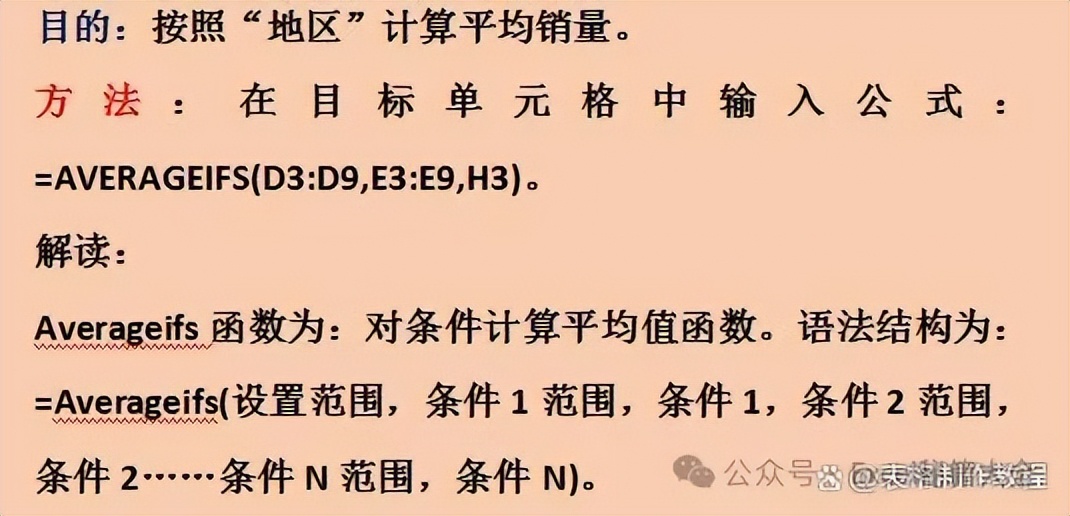 公式:=AVERAGEIFS(D3:D9,E3:E9,H3)