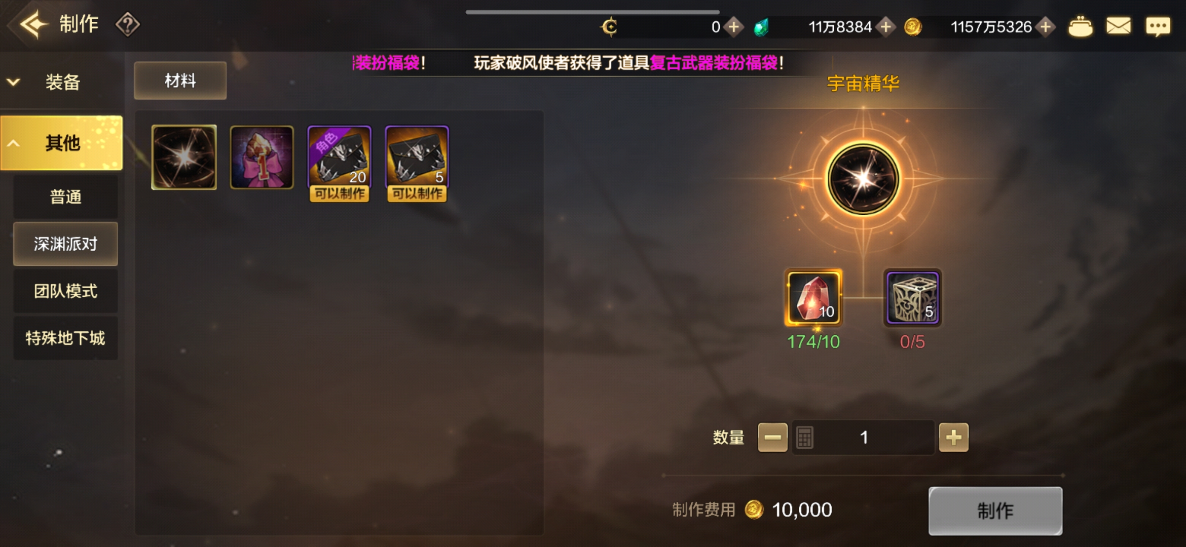 小词条洗一次需要一颗奇迹变换石,参考今天的拍卖行价格是924泰拉。大词条洗一次消耗就更贵了,需要一个宇宙精华,制作一次宇宙精华需要10个深渊碎片+5个装备品级调整箱,今天拍卖行价格是4235一个,洗一次需要2万泰拉,同时还会耽误跨界石的进度。