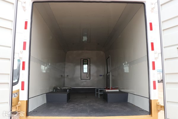 实拍该6座客货车的货厢内部长度6.1米、宽2.35米、高2.35米,容积达到了33方。如果平时没有载客的需求,还可以选择货厢尺寸更长的2座车型,这样容积能提高到34方,可以满足各种种类的载货需求。
