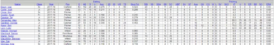 棒球数据表示例 图源:ncaa.com