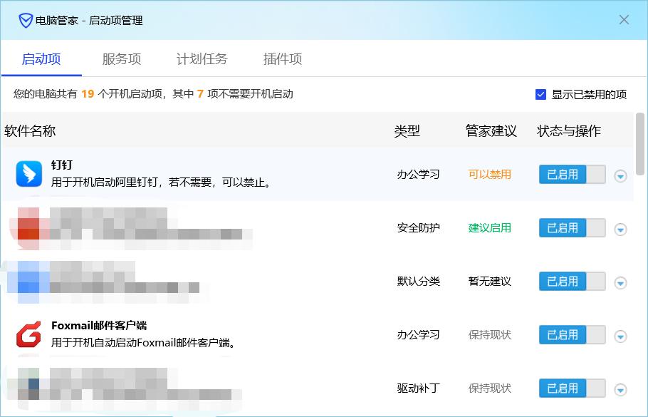 可根据实际需要进行禁用启用,如果不清楚的根据软件建议操作。也是非常好用的功能。