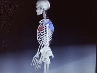 上图所示,圆肩、含胸、驼背的变化过程;圆肩是负责肩胛骨前外上的胸小肌和前锯肌紧张短缩,而拮抗的菱形肌和斜方肌中束被拉长无力;负责肱骨内旋的肩胛下肌、背阔肌、大圆肌、胸大肌、三角肌前束出现紧张短缩,而拮抗的冈下肌、小圆肌、三角肌后束被拉长。这势必会导致肩膀在运动过程中,轨迹出现问题,从而引发疼痛。