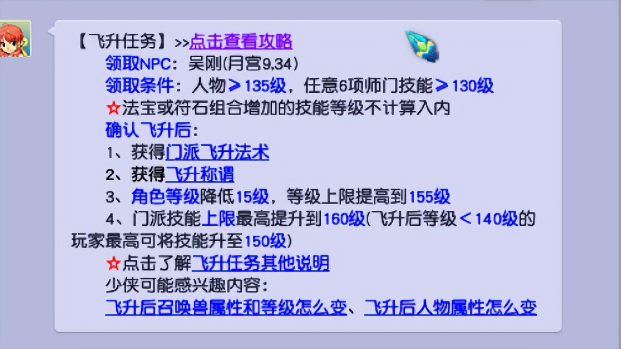 8、飞升技能,每个门派飞升之后获得两个技能,对刷任务有用的还没真几个。
