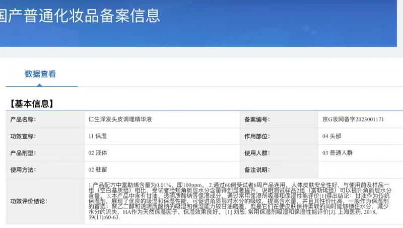 “秃”如其来的烦恼,即使是英国王储也无法避免且解决不了。国内有2.5亿人面临脱发困扰,这也形成了巨大的商机。日前,网红经济学家任泽平宣布推广一款“仁生泽发”的洗发产品,并在微博中贴出先后对比图,暗示其有生发效果,也赚足了关注度。然而,该产品从未上市开始就争议不断。北京青年报记者查询发现,其按照普通化妆品备案,备案信息中没有出现任何与“生发”“减少断发”“修护毛囊”等有关的功效,有的仅是“清洁”和“保湿”。