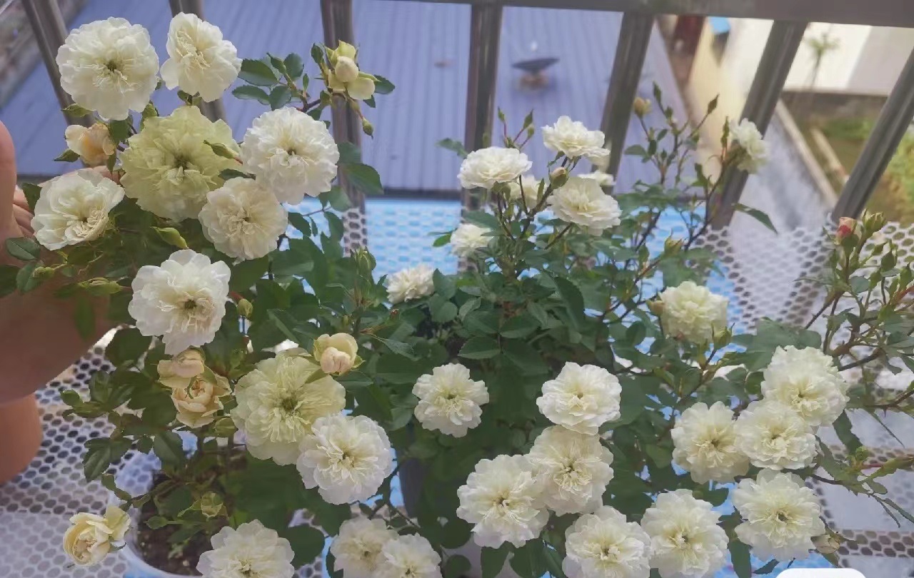 总结:绿冰是月季花界比较独特的存在,多数时候充当“配角”的角色,叶色翠绿油亮,花朵也是白中带绿的,光是凭着丰花勤花、皮实抗病这两个优点,就值得你养一棵,喜欢的花友可以试试。