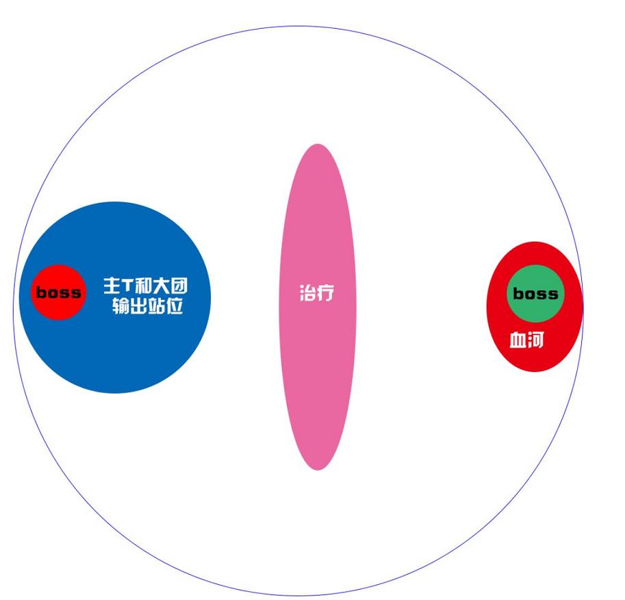 开打前最好在场地上标记好点位,靠边缘的位置一左一右分别是内功和外功站位,T把boss拉在2个点位中间。注意:1、期间boss会有一个倒计时的buff,时间结束会召唤一个小怪(红怪或蓝怪),需要内外功分别拉开打死(外打蓝,内打红)。2、boss会释放全屏技能4次,需要跳跃躲避。3、boss的扇形石头,需要解控了躲避。