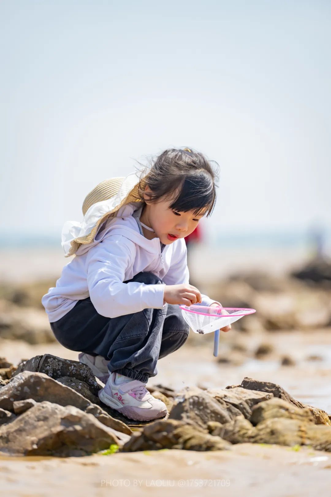 翻开礁石寻螃蟹、俯身捡拾贝壳海螺