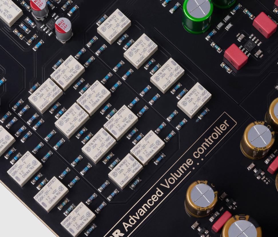DMP-A8的高精度电阻与继电器构成的全平衡模拟音量调节网络,可实现精准的音量控制,有效的抑制模拟信号的失真及噪声。更具备音量保护功能,过大的音量在开机或输入接口切换时会自动降至设定的安全音量。R2R模拟音量控制的加入,可以使DAC一直工作在Bypass的最佳状态,避免数字音量带来的失真和底噪,在任何音量都能保持高动态范围。