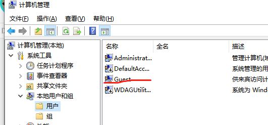 ENT打开管理,找到本地用户和组里的用户,双击旁边的GEST用户