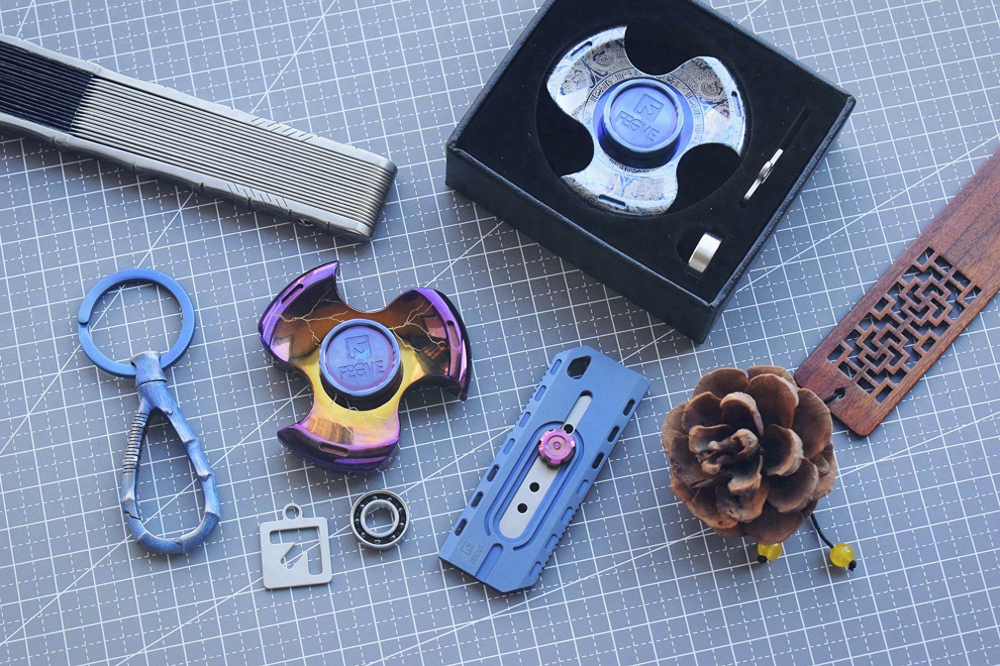 虽说指尖陀螺在国内早已过了火热期,但本人一直无缘入坑。借着最近减压戒躁的机会,突然想买几款把玩下。因为之前对FEGVE的品质印象深刻。就想着干脆还是它家吧。斐戈的指尖陀螺有好多种,单论叶数,有两页、三叶、四叶和齿轮之分,而材质上不锈钢、黄铜、钛合金也是一应俱全。其中,三叶因为重心分散的关系,把玩旋转时不易抖动,无疑是最为稳定的,也容易玩出花样。而钛合金在近年来的普遍采用,抛却耐腐蚀、高温等特性外,还可以烧制、烤蓝处理,单看颜值就更漂亮。作为初入坑的玩家,于是挑来选去,最终还是选了经典的“胖三叶”,并取其中的玛雅和雷纹两种。一番体验感觉的确蛮有意思,就近期的心得感受分享给大家: