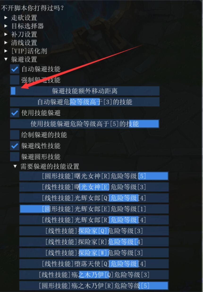 1.自动躲非指向性的飞行弹道技能功能,比如拉克丝的Q、E、R,和EZ的Q、W等