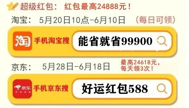 首先,划重点!今年京东的618红包口令是「红包588」,淘宝618红包口令是「好运红包8811」要记住!