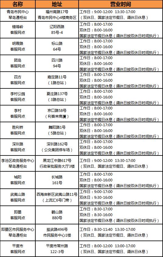 各琴岛通人工客服网点均可办理老年免费卡、学生卡、献血荣誉卡业务;青岛市民中心琴岛通柜台、错埠岭客服中心、明霞路客服网点、团岛客服网点、四方客服网点、李村公园客服网点、李村客服网点、胜利桥客服网点、深圳路客服网点、城阳客服网点、李沧区政务服务中心琴岛通柜台可办理拥军卡业务。