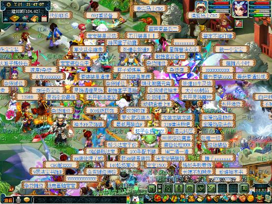 区内地摊经济十分发达,建邺城、傲来国、长寿村、擂台附近、长安酒店门口、长安城门口、擂台下均有大量摊位。