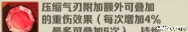 技能介绍,压缩气刃附带可以额外叠加的重伤效果,每次释放可以叠加百分之四,最多可以叠加五次,持续十秒的时间。