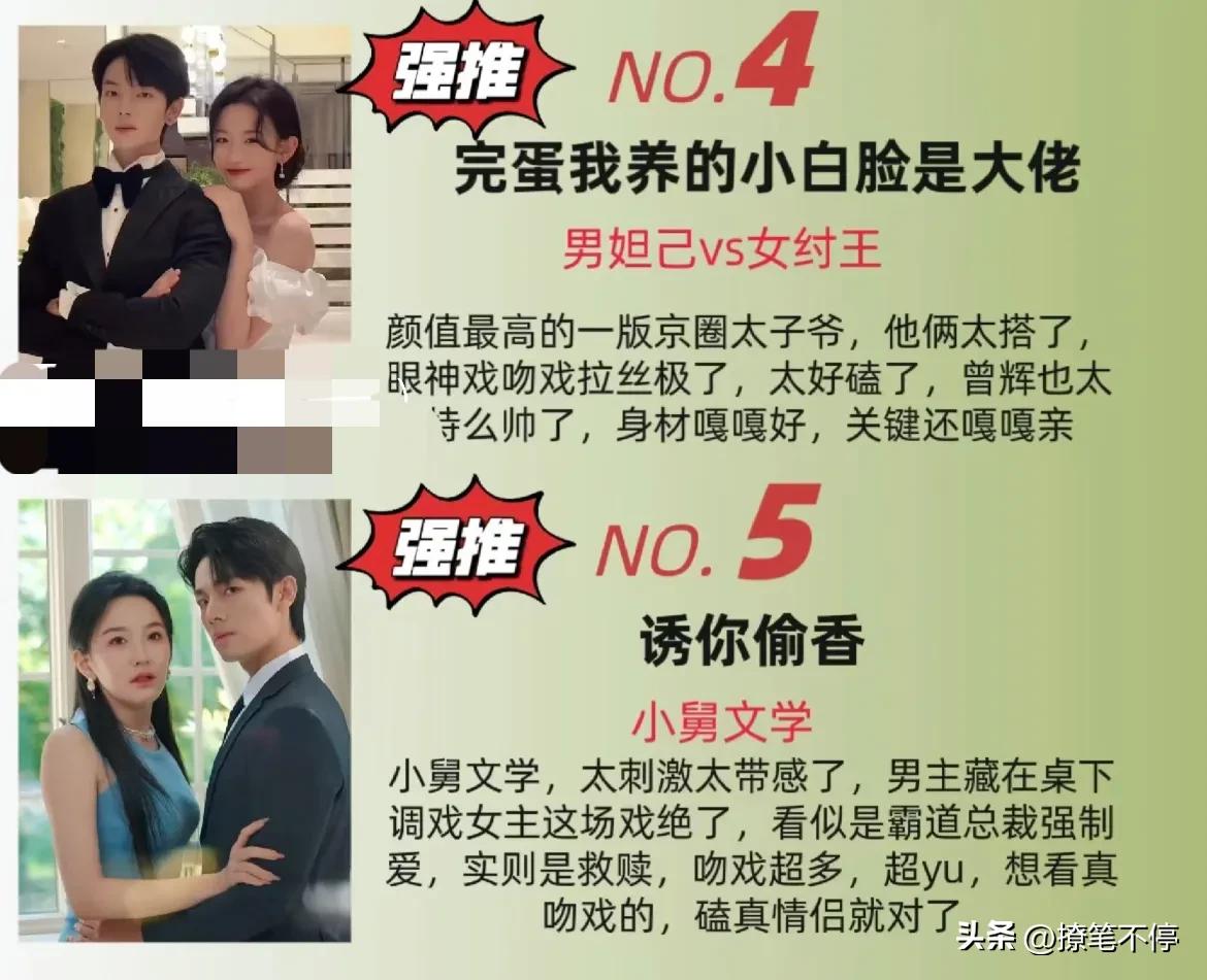 两个人已经5搭,我个人比较喜欢《完蛋,我要的小白脸是大佬》,就喜欢那种你逃我追的庸俗戏码。