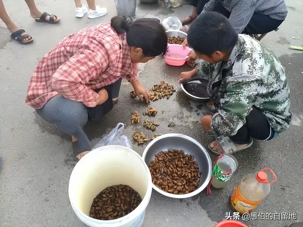 在卖知了猴的那段时间里,这种场面,俨然是乡镇中一道特有的风景。