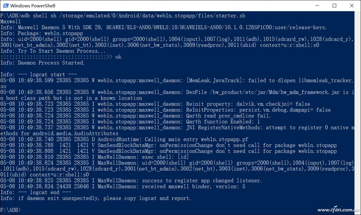 如果秋之盒中没有集成你所需要的Adb功能模块,可以点击右下角的“ADB命令行”按钮,一键切换到CMD或Powershell窗口,然后就能按照传统方式使用Adb指令控制手机了。