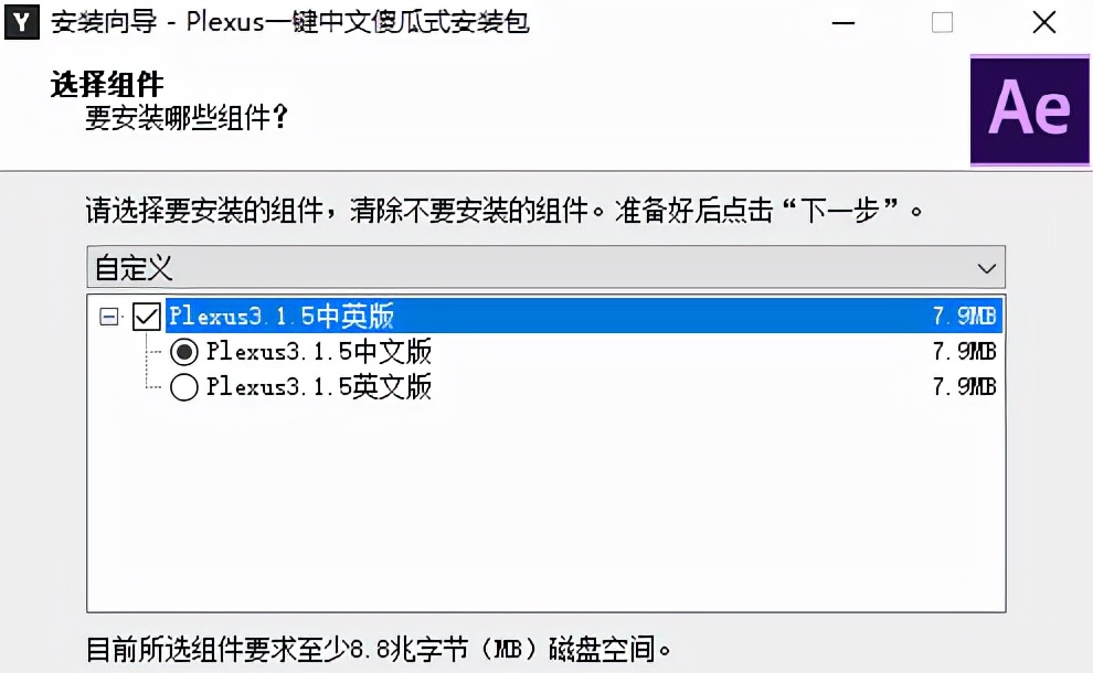 1、安装ElementInstaller_2.2.2.2160.exe原版程序,安装路径选择Custom-Browse,自定义选择你AE安装目录下的\Support Files\Plug-ins