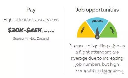 空乘在新西兰的工作机会适中,收入不很高。根据新西兰航空提供的信息,平均3万到4.5万纽币年薪较新西兰其他职业,可以说是差强人意。薪金起伏主要取决于飞行路线国内还是国际等的不同。升职为乘务长薪金有望超过6万纽币。