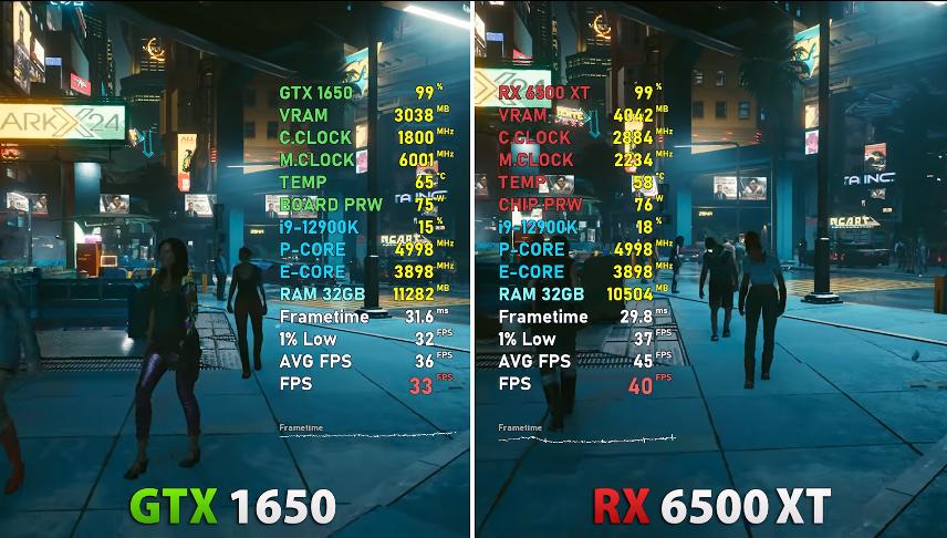 (二)RX6500XT和GTX1650,1650S等显卡全面对比: