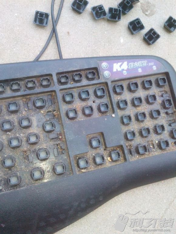 随便说一句,键盘使用日久往往会出现漏电、按键卡死等故障,此故障应及时处理,否则在输入文件时将会键入一些错误的字符。处理时应把键盘用一个托架托起来,按键向下,打开键盘的后盖,用酒精清洗线路板及按键的触点,并把卡死的按键下面的弹片适当撬起,使之恢复原有的弹性。