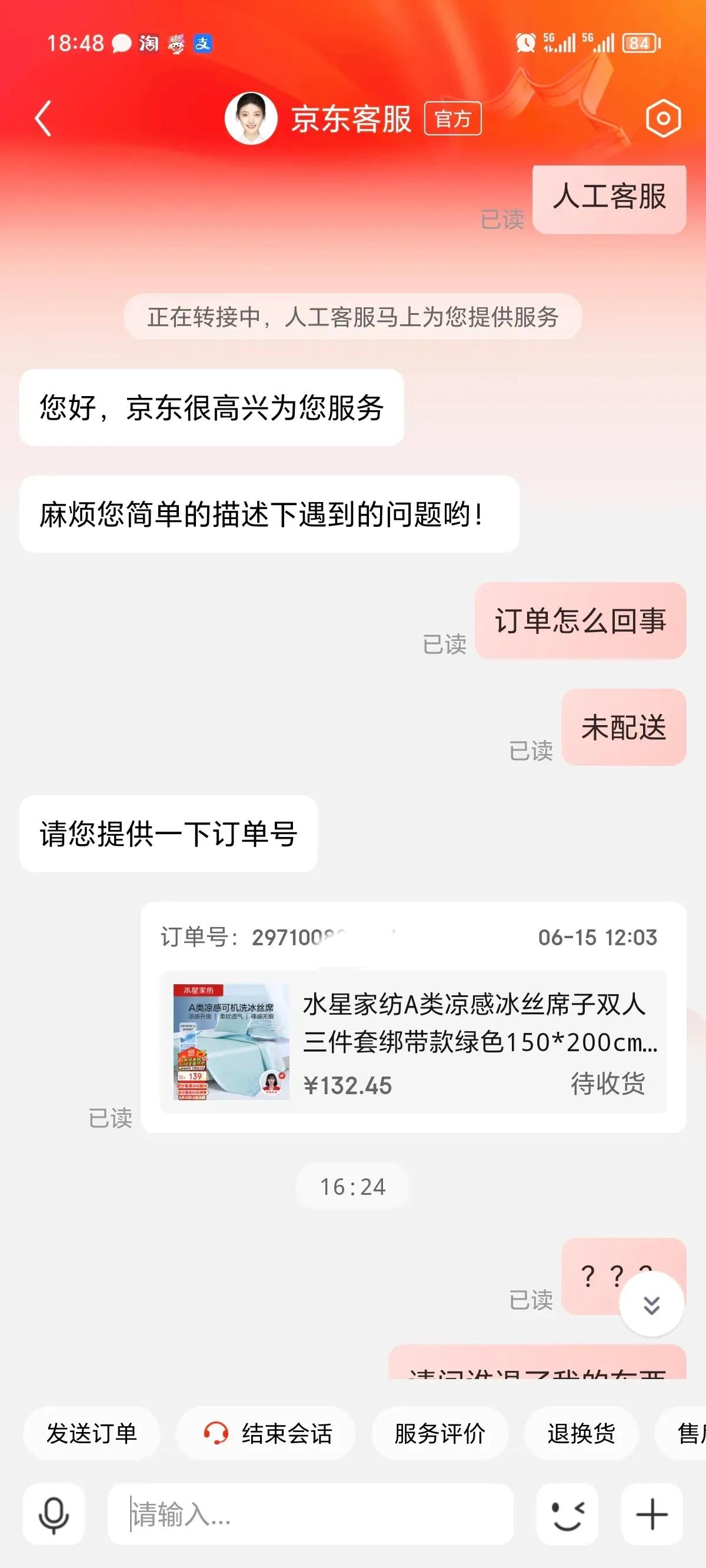 2024年6月15日,也就是父亲节前一天,在京东商城下单一款凉席,打算送给在外地打工的孩子爸爸作为节日礼物,物流显示会在6月16日父亲节当天上午送到