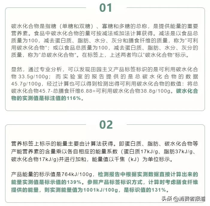 田园主义全麦面包被检出能量值、碳水化合物值虚标