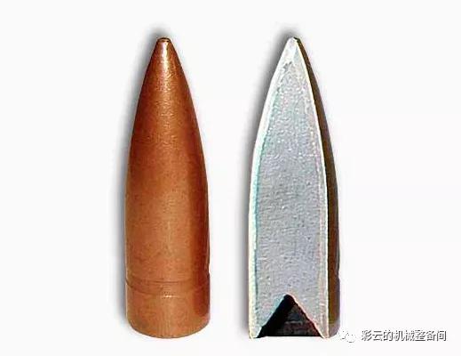 BT穿甲曳光弹头剖面分解,注意那个尖头钢芯。