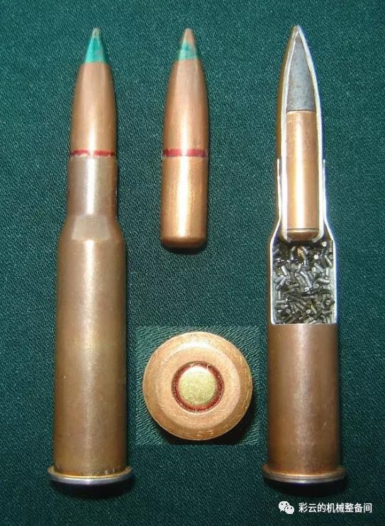 改进型B-32穿甲燃烧弹头,穿甲弹芯后方增加了铜盂,铜盂内有燃烧剂。