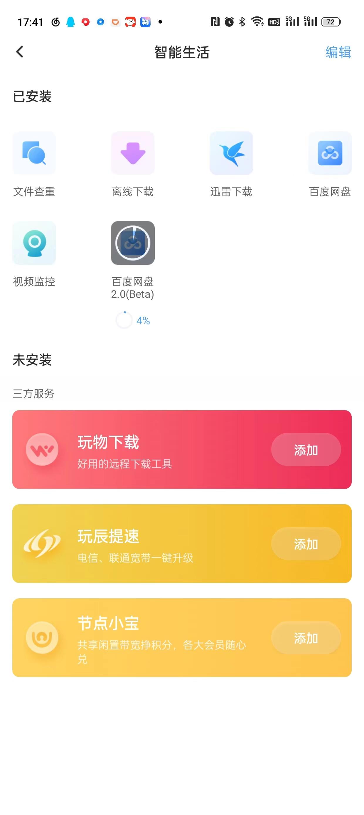 这里我选择安装迅雷、百度网盘和视频监控这些基础应用,试了下和手机版本差不多,其中百度网盘支持将NAS文件直接同步备份到百度网盘上,但是得另外购买会员服务。