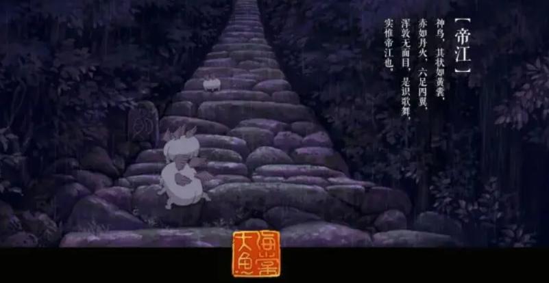此外,不少影视作品中出现了《山海经》中的神兽帝江。《山海经》记载:“有神焉,其状如黄囊,赤如丹火,六足四翼,混沌无面目,是识歌舞,实惟帝江也。”《捉妖记》中的胡巴灵感来自帝江,胡巴有六足,能歌善舞,有神奇的能力,都符合帝江的特征,但胡巴设计得过于卡通,失去了神兽的奇幻感、神秘感、古朴感。《大鱼海棠》中出现了一群胖乎乎、呆萌的长翅膀的小动物,那就是神兽帝江。片中那只长着鹿角的类似小白猫的神兽,则是大名鼎鼎的白泽。