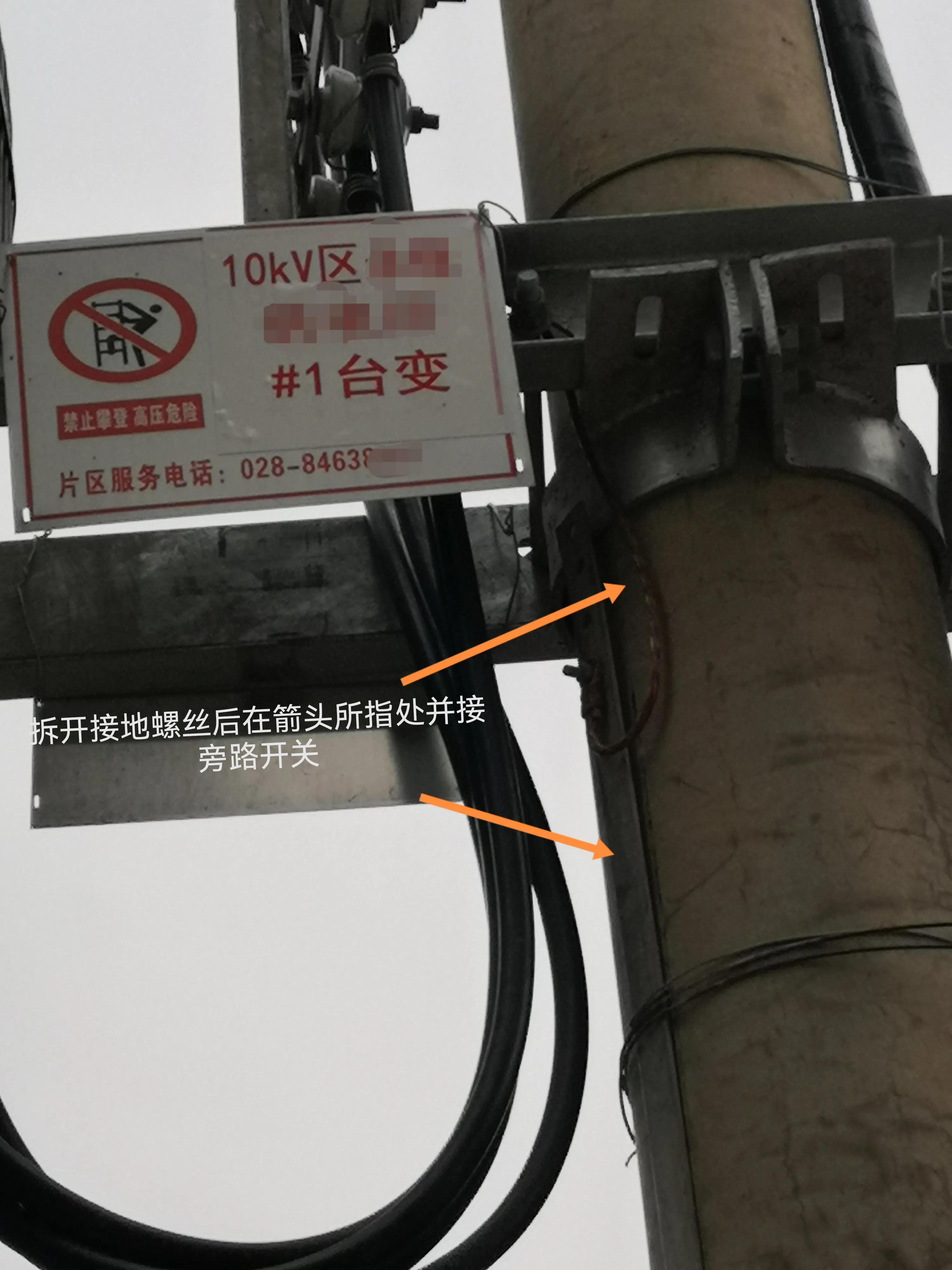 特别提示:一,具体操作时一定先把旁路开关接好并检查处于闭合状态,这样断开接地螺丝瞬间,接地引下线不会因为中性点不平衡带上一定电压。