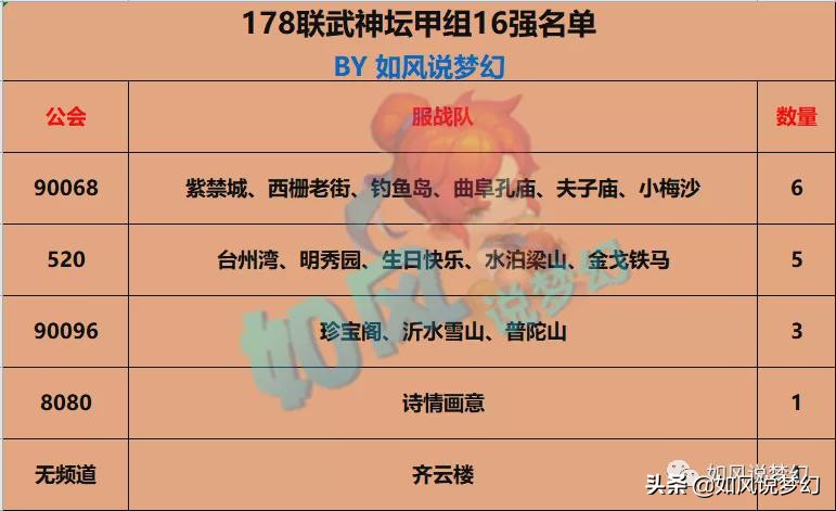 梦幻西游:178联服战16强名单,“王猴之交”助诗情画意挺进16强